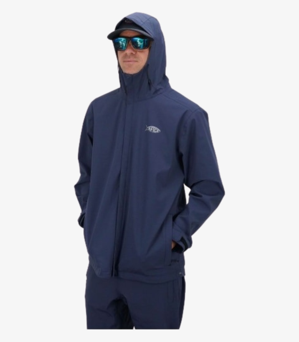 AFTCO Transformer Packable Fishing Jacket for Men Naval Water-Resistant Hooded Rain Shell