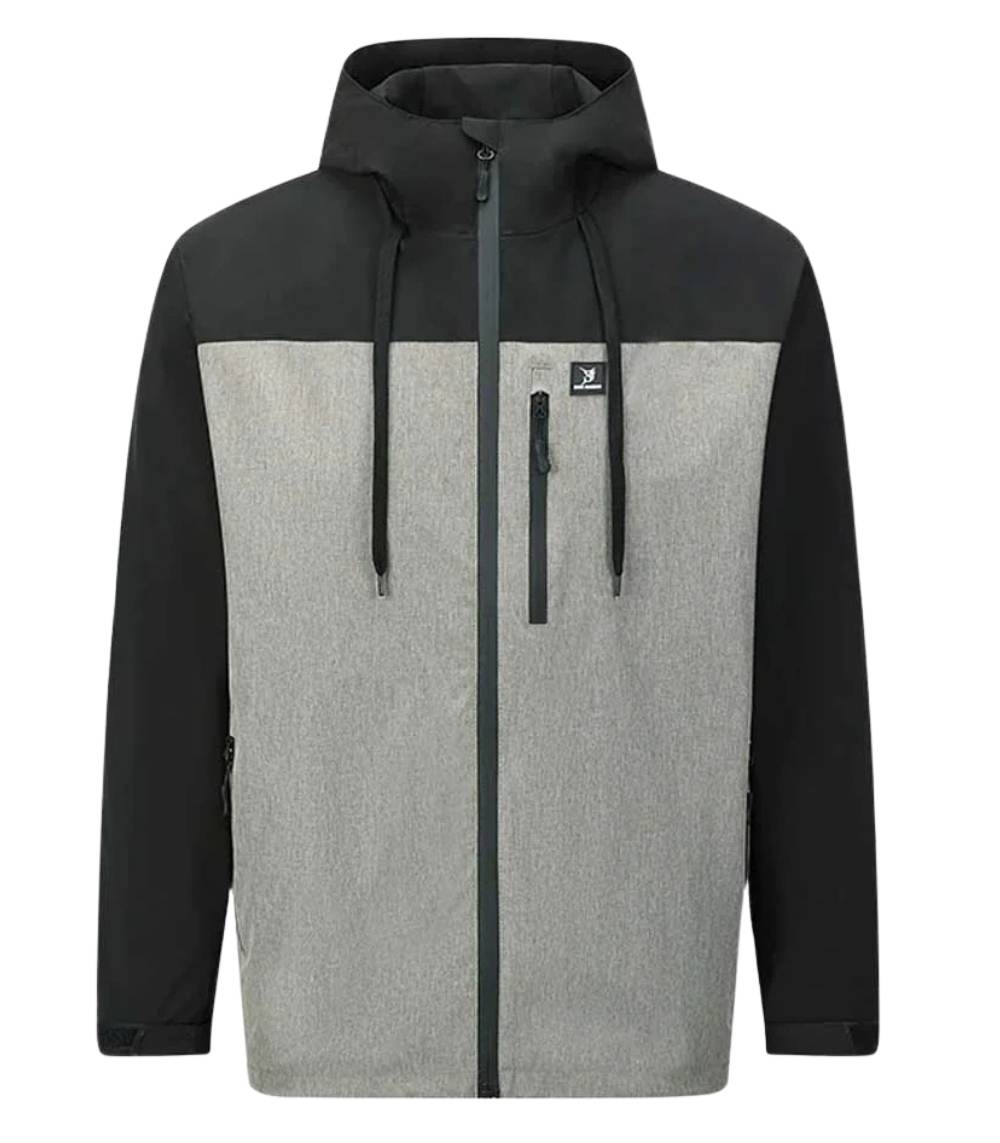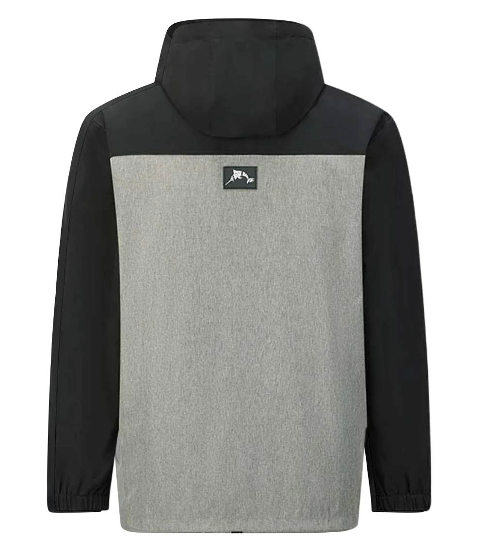 The Bob Marlin Performance Jacket 2.0 Grey/Black. Crafted from 100% premium polyester, this upgraded model is fully waterproof, windproof, lightweight, and breathable, making it ideal for fishing, boating, and outdoor adventures. Designed with three waterproof zippered pockets, adjustable straps, and durable construction, it offers both functionality and modern style for all-weather comfort.