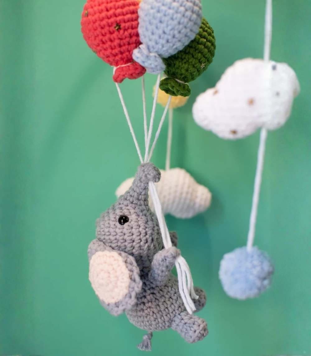 Handmade Crochet Elephant Baby Mobile by Myrtilus