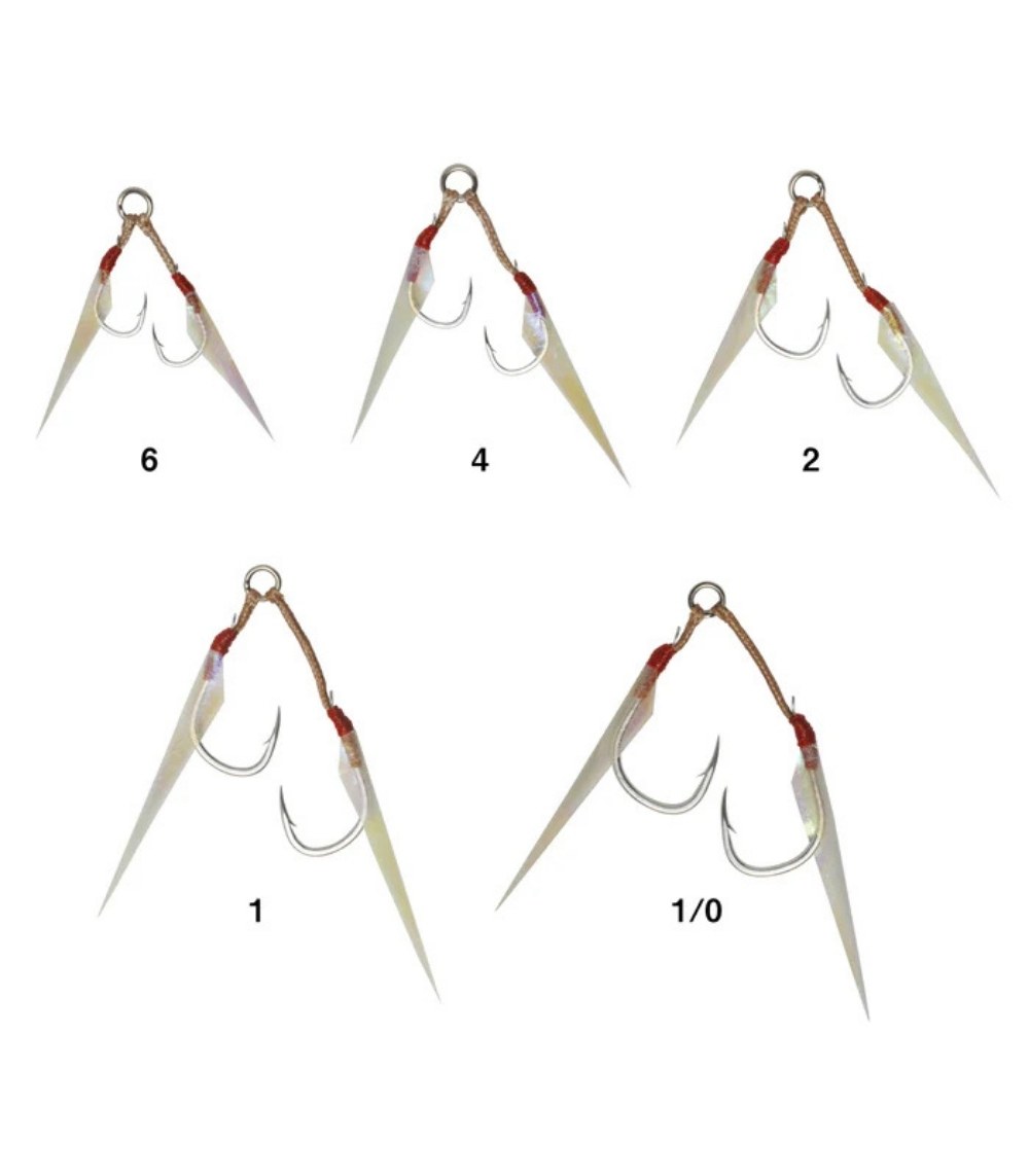 The Light Bait Plus series is available in Size 1, Size 4, and Size 1/0, giving anglers flexibility to match different lure or bait setups. Each pack contains two assist hooks, making it convenient for both replacements and fresh rig builds.