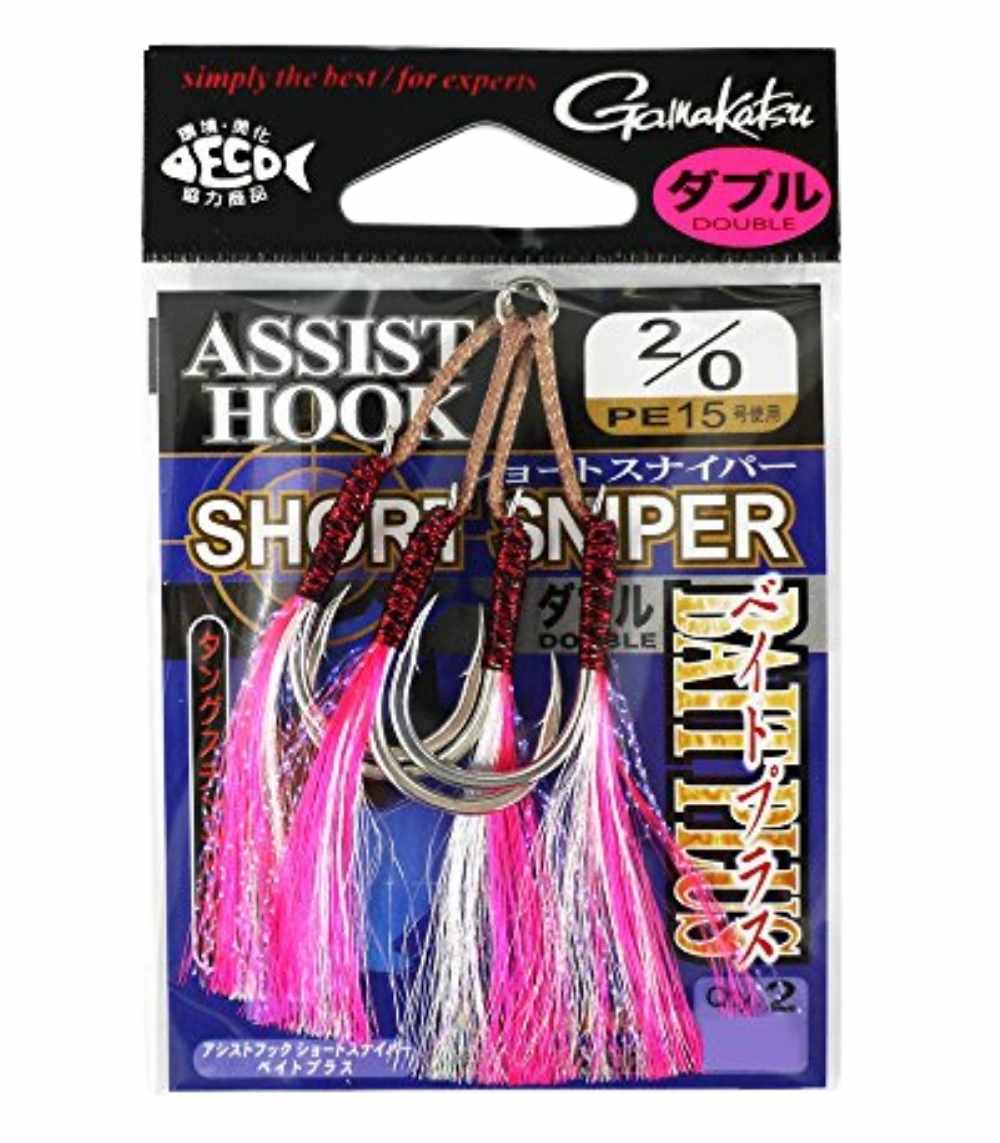 The Gamakatsu GA-020 Short Sniper Bait Plus W is a double assist hook designed for small bait presentations and tungsten jigs. Built with PE15 assist line and needle-sharp penetration, it offers reliable hooking performance in compact jigging and bait-plus rigs. Available in sizes #2, #1, #1/0, and #2/0, each pack includes three hooks.