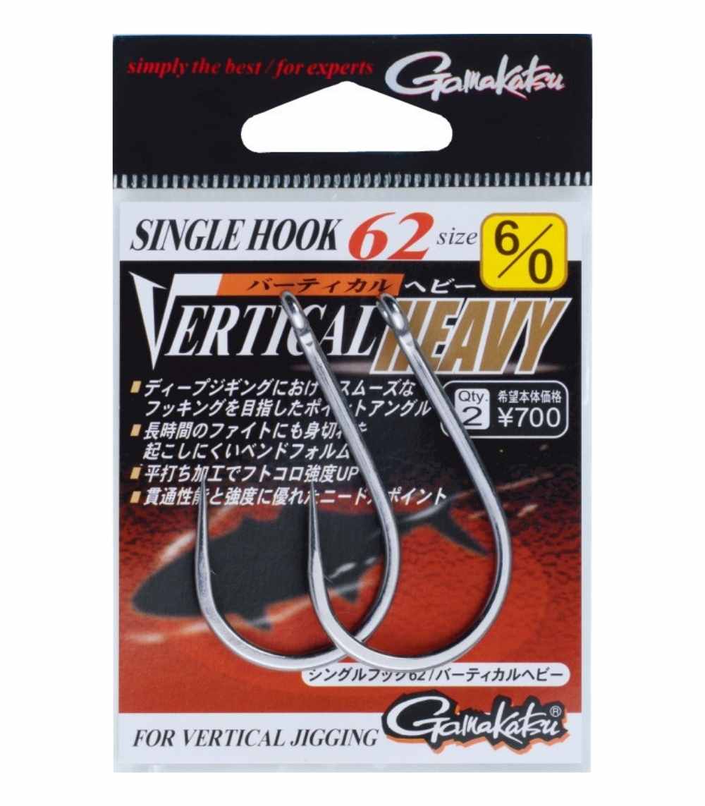 | Gamakatsu | Single Hook 62 Vertical Heavy | 5/0 | High-strength steel, corrosion-resistant finish |