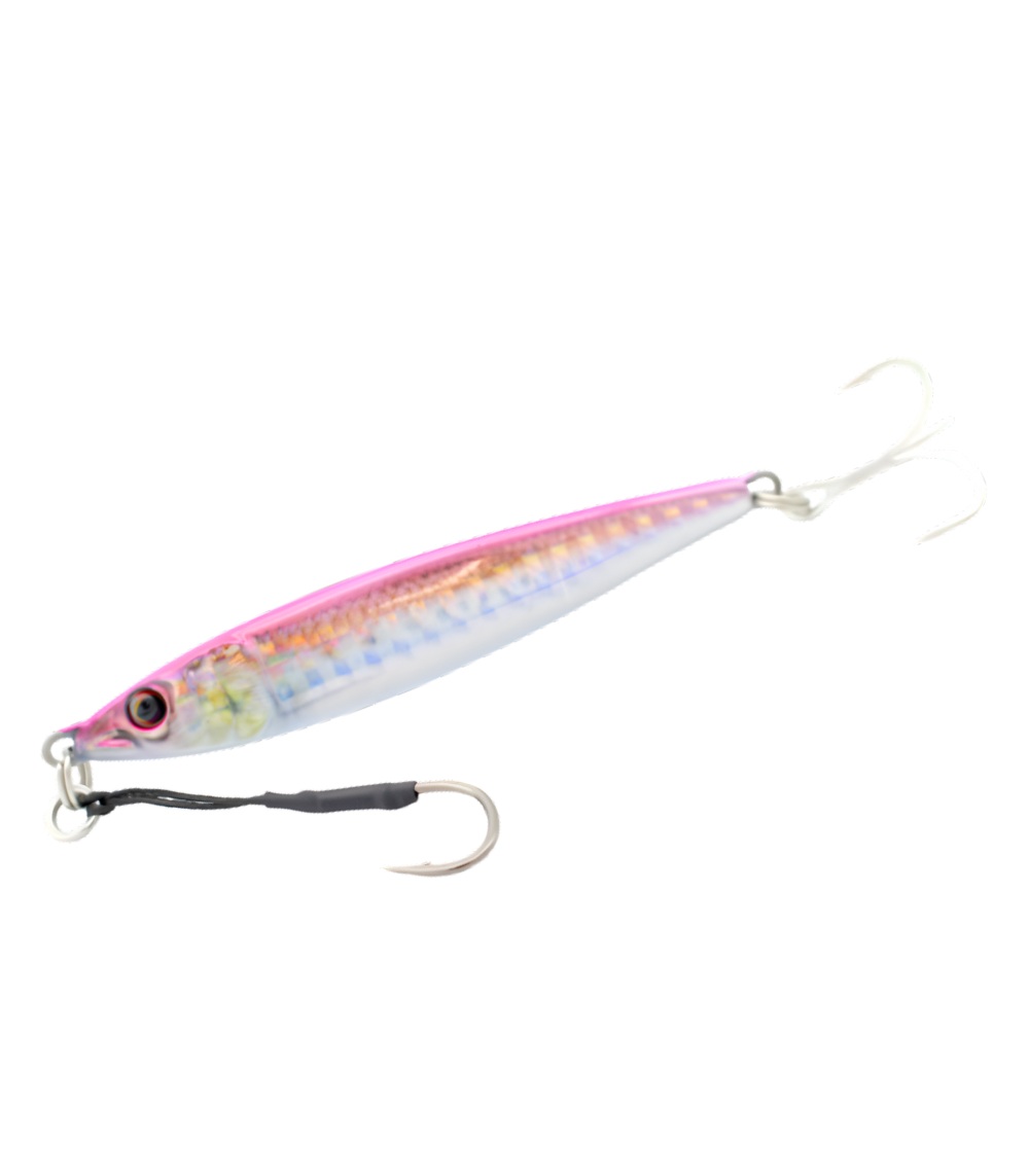 The Little Jack Metal Adict Type 02 Metal Jig is a highly realistic, slender-body metal jig designed to deliver excellent performance across both shore and offshore applications. Its thin, straight baitfish-like form and center-balanced design produce a lively fluttering action that responds precisely to the angler’s technique.