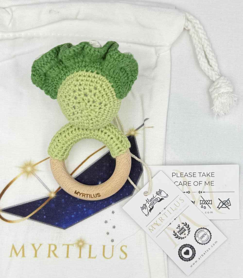 Delight your little one with the Handmade Crochet Dinosaur Teether by Myrtilus—a fun, sensory-safe teether designed for comfort and play. Lovingly crocheted from 100% breathable cotton and paired with a smooth wooden ring, it’s ideal for babies experiencing sore gums and emerging motor skills.