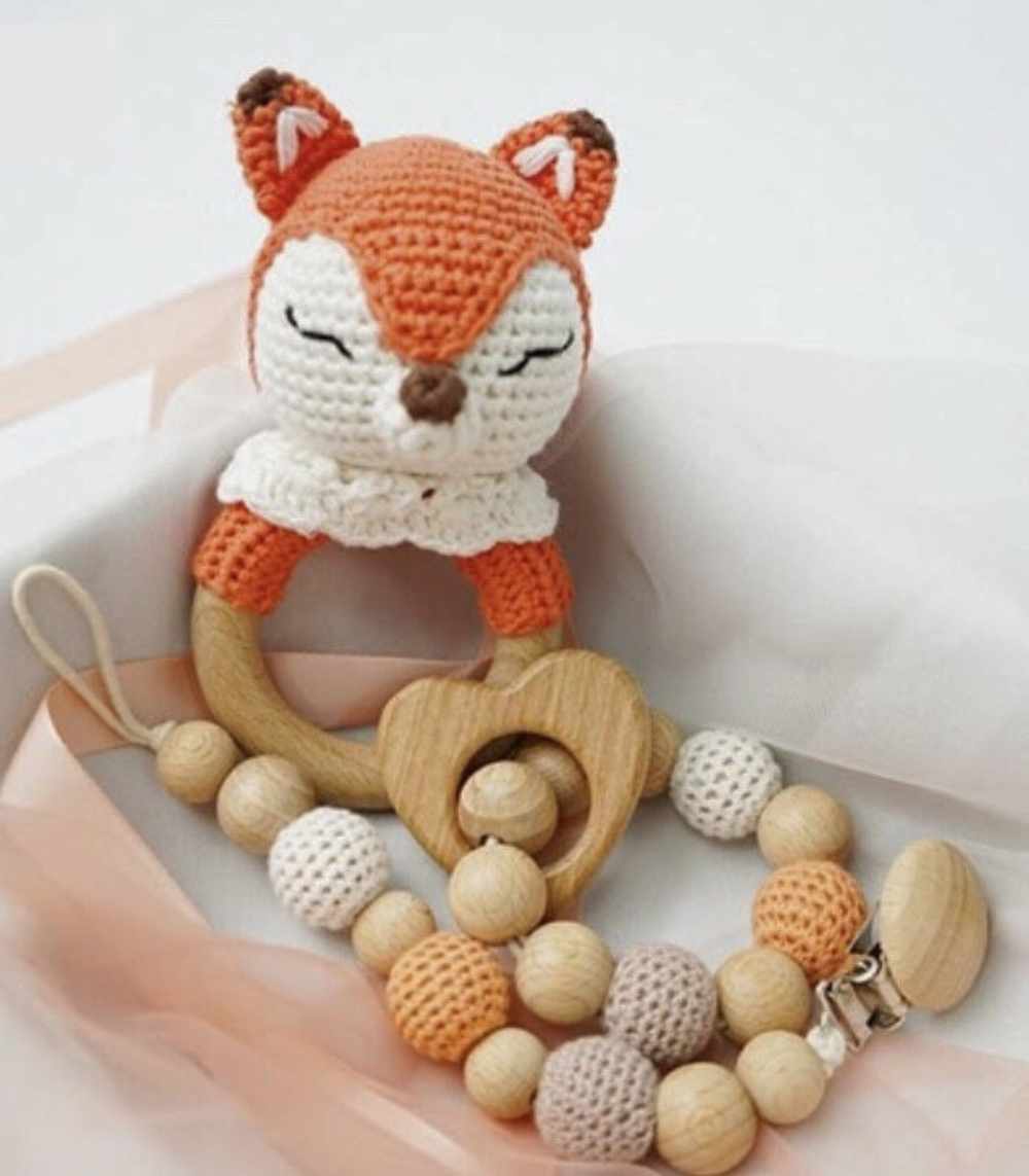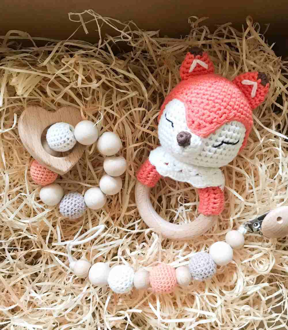 Myrtilus Crochet Fox Rattle & Teether Set – Handmade in Cotton