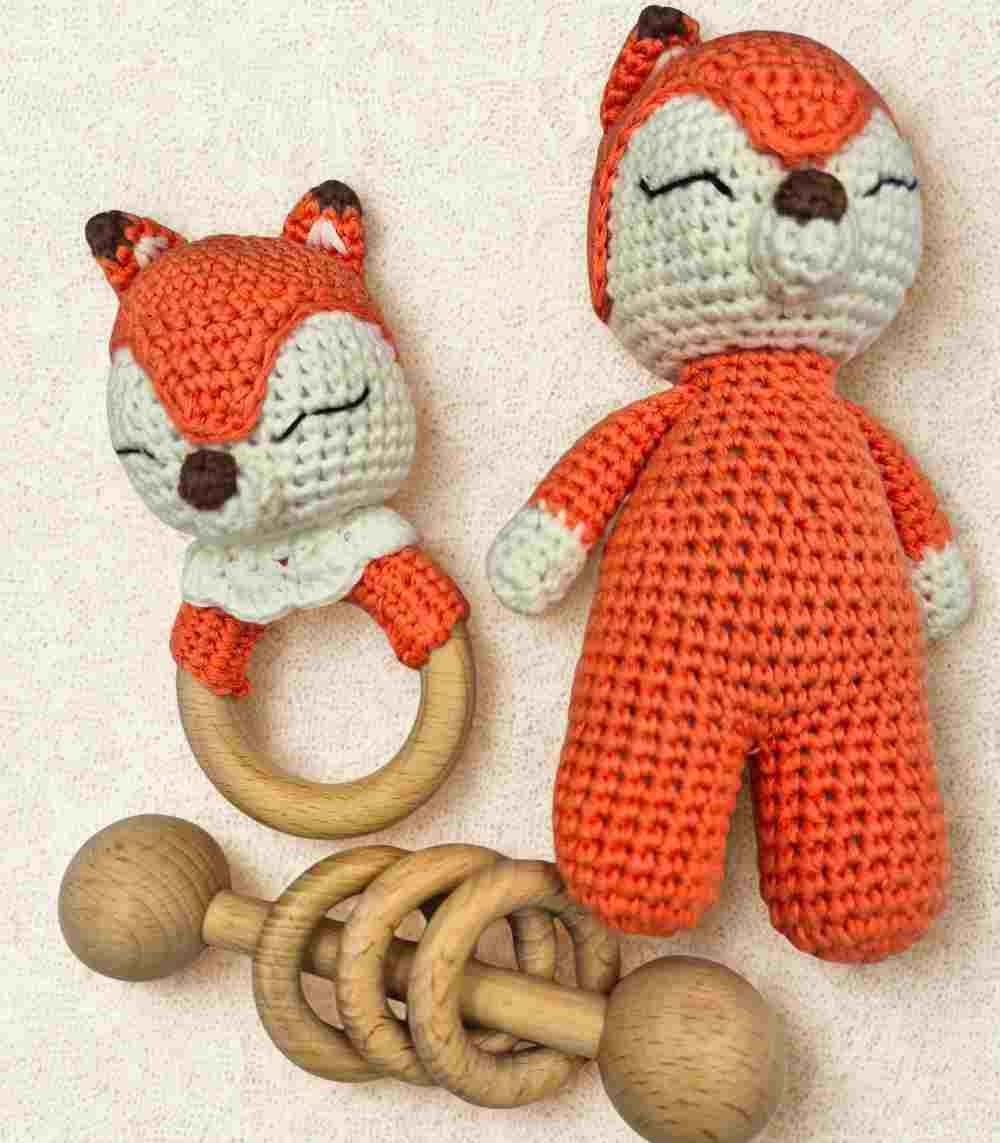 Myrtilus Crochet Fox Teether Gift Set – Handmade in Cotton