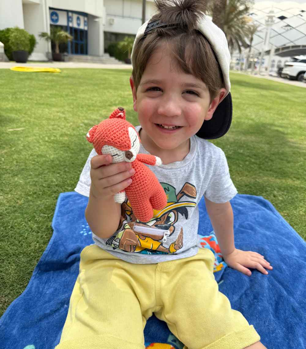 Crocheted from soft cotton yarn and filled with hypoallergenic PP cotton, the fox has a breathable, soothing texture that’s perfect for cuddles and sensory comfort.