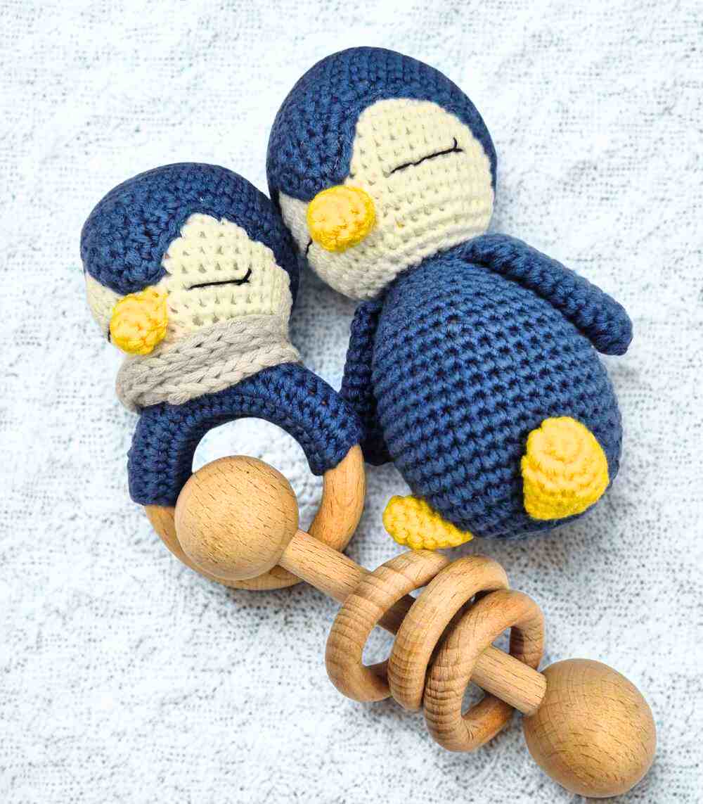 Handmade Penguin Teether Gift Set by Myrtilus – 3-Piece Cotton Baby Toys