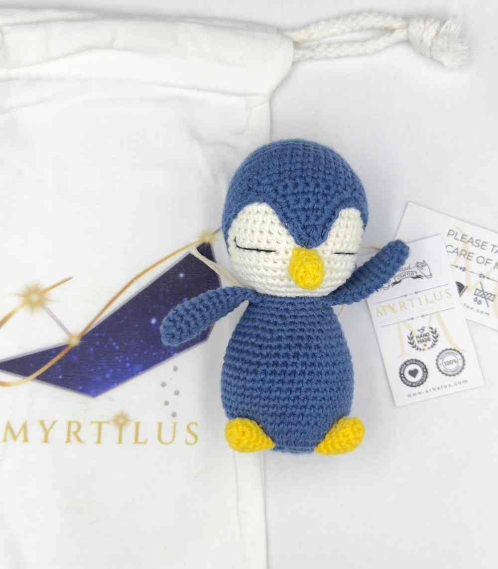 Each penguin comes in a reusable Myrtilus cotton pouch—an eco-friendly, gift-ready touch.