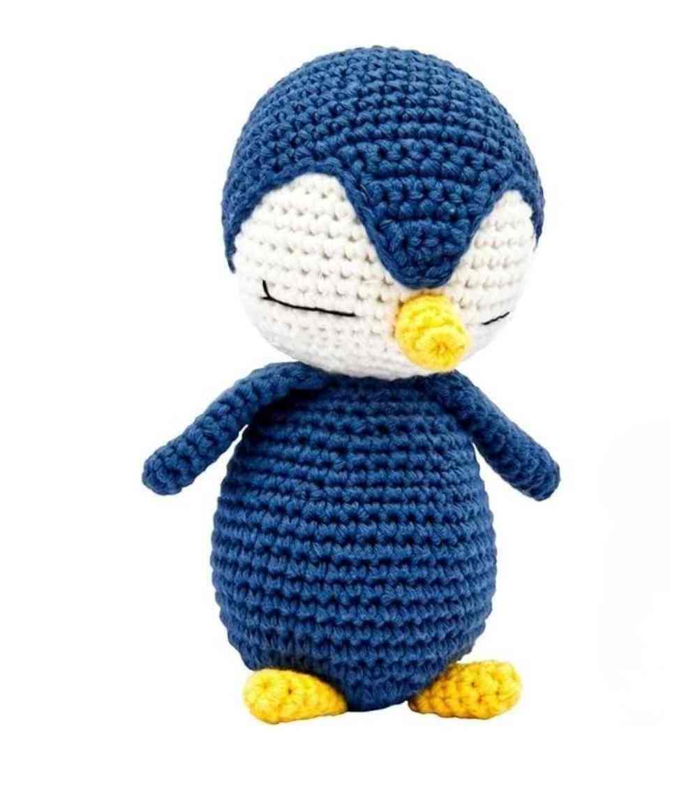 Available in size 16 cm, it fits easily in small hands, nursery shelves, or travel bags. Whether it’s a gift, keepsake, or decorative accent, this penguin brings lasting comfort and handmade character.