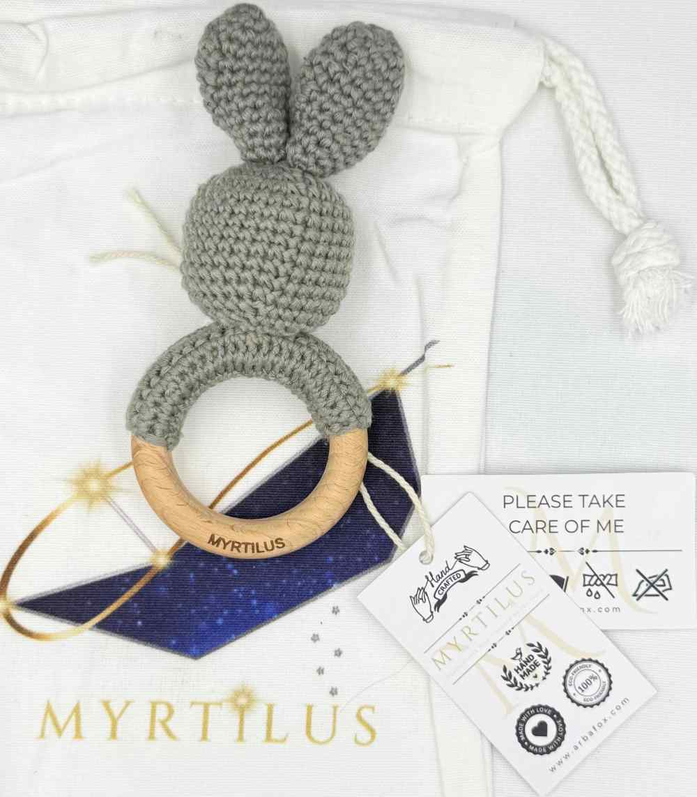 Myrtilus Crochet Ring Rattle Teether – Handmade in Cotton