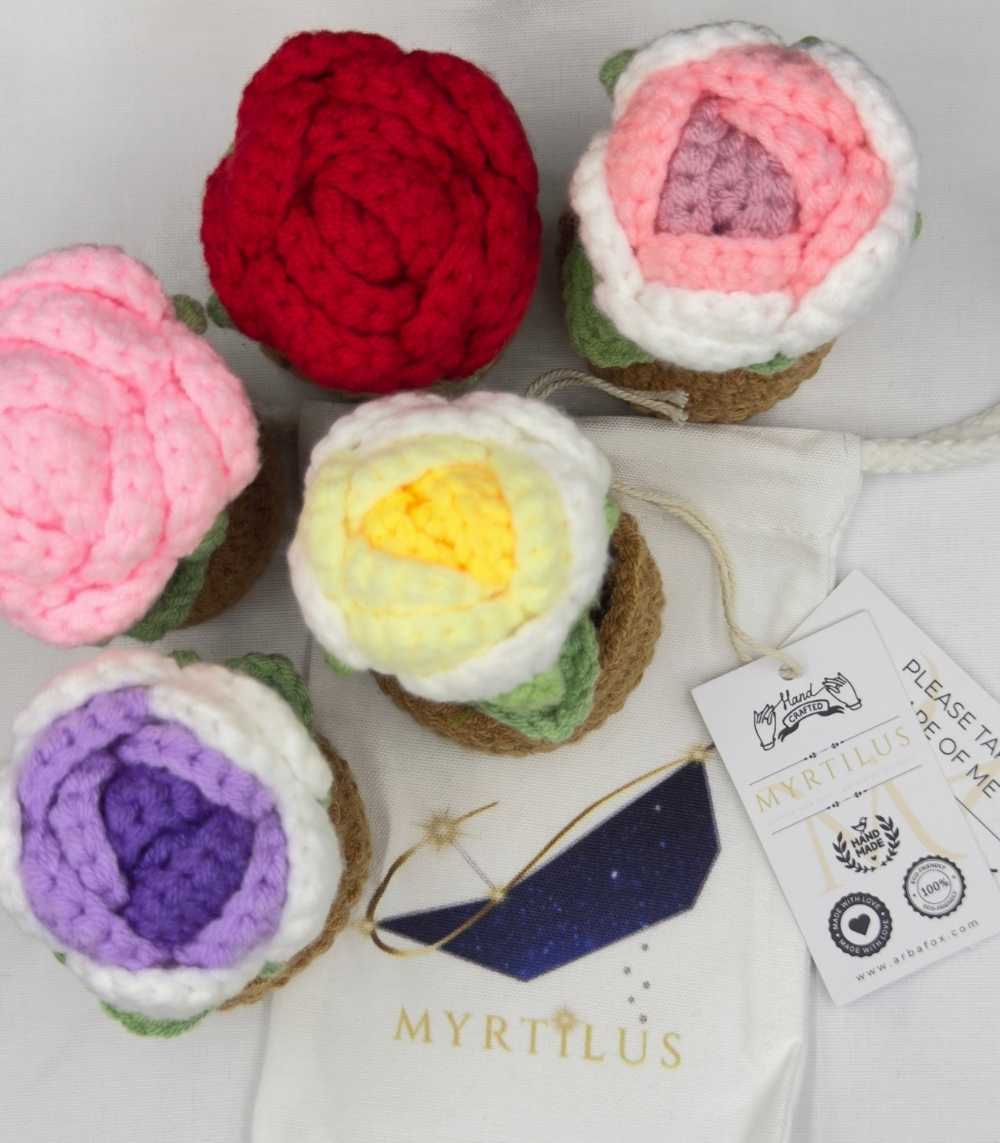 Expertly crocheted by Myrtilus artisans using traditional methods. Every rose supports ethical, small-scale production.