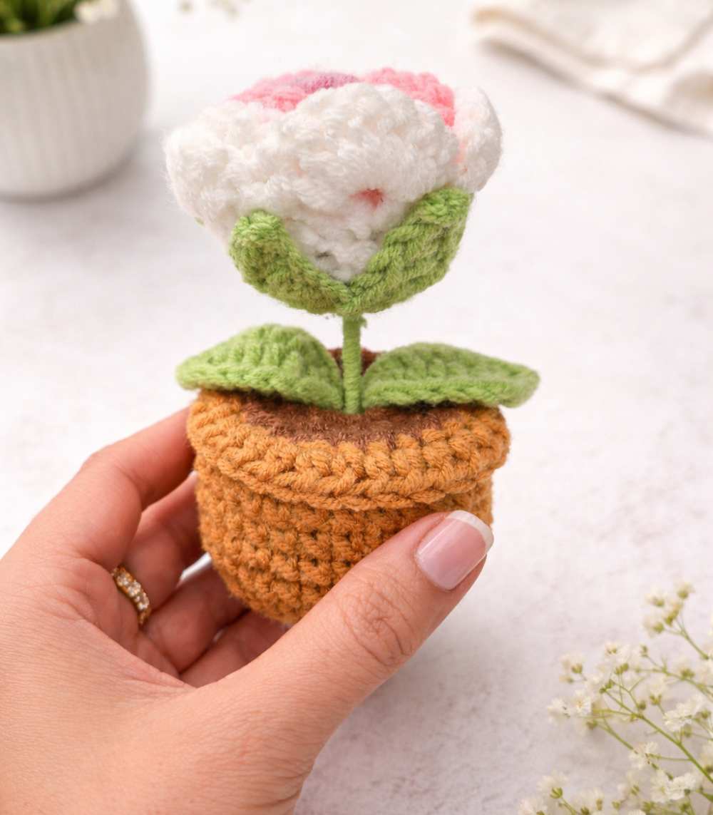 With its realistic form, lasting color, and handcrafted quality, this crochet rose offers a sweet, meaningful touch to any setting.