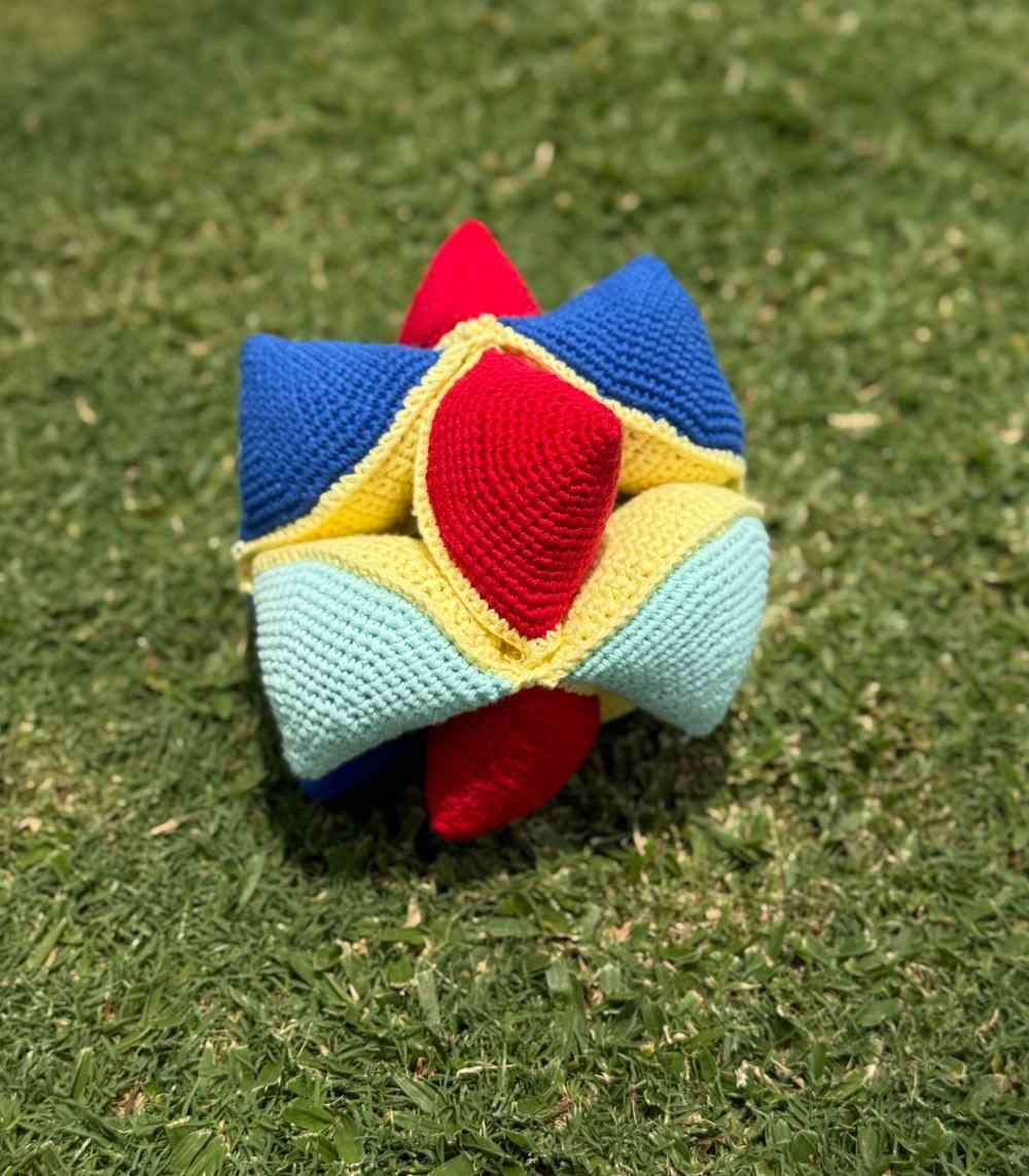 Featuring a beautifully crocheted segmented design, the ball is easy to hold and gentle on gums. Its lightweight, flexible structure encourages early motor skills, while the vibrant colors attract visual attention. Whether used during tummy time, in a stroller, or at play, it supports healthy sensory development in the earliest stages.