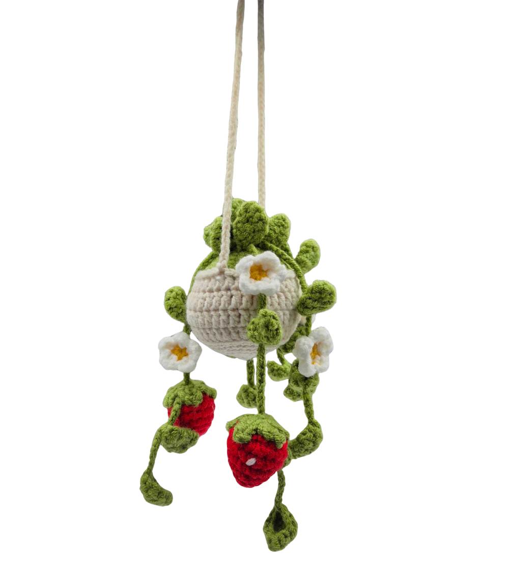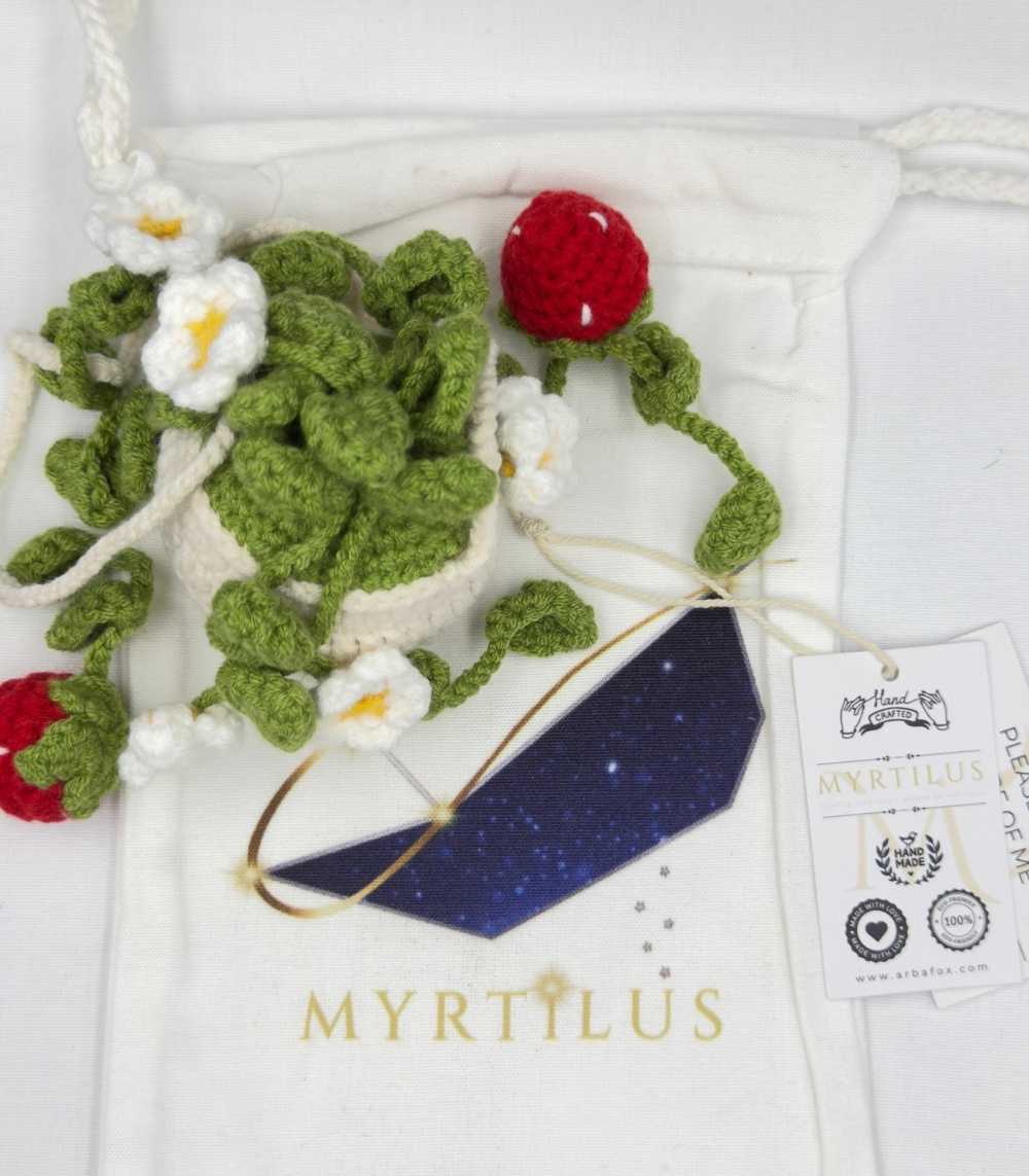 The Myrtilus Handmade Crochet Hanging Basket is a charming way to add a little greenery—without the maintenance. Each piece is thoughtfully crafted by hand and features a miniature crochet planter overflowing with either delicate white flowers or playful red strawberries with leafy greens.