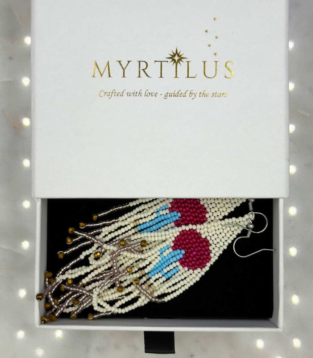 Each pair comes in a premium Myrtilus jewelry box, making it a perfect gift for birthdays, holidays, or anyone who appreciates handmade artistry. Whether you’re dressing up for a festival or adding flair to your everyday look, these earrings bring a touch of desert magic to any outfit.