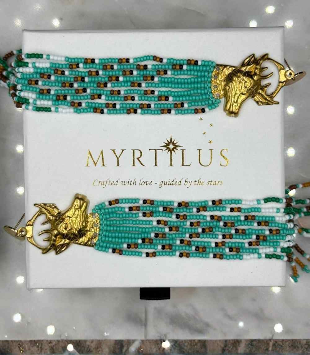 Bring a sense of regal wildness to your accessory collection with the Myrtilus Lampwork Drop Earrings – Regal Stag & Rustic Beaded Tassel Design. These handcrafted earrings feature a stunning golden stag head post that adds a bold, sculptural flair to the flowing tassels of Bohemian-style seed beads. The elegant drape and intricate beadwork create a dramatic silhouette that embodies a balance of nature-inspired strength and artisan charm.