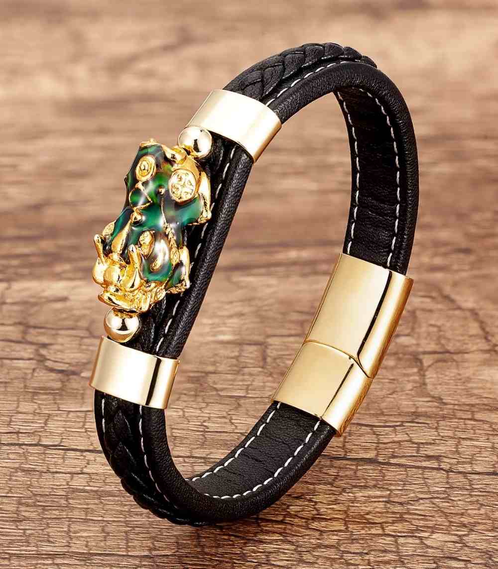 The Handmade Men’s Pixiu Leather Bracelet by Myrtilus is where heritage meets style and meaning meets design. Crafted with precision, this 21 cm bracelet is made from genuine braided leather and features a high-polish Pixiu charm—a legendary Chinese creature said to attract wealth, fortune, and protection.