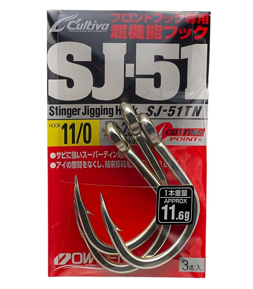 The Owner 11648 SJ-51TN Single Hook Stinger Jigging Hook is an ultra-strong single jigging hook engineered for targeting extra-large offshore predators. Compared to the SJ-41 series, the SJ-51TN offers significantly higher tensile strength, reinforced hook structure, and improved durability while maintaining excellent penetration.