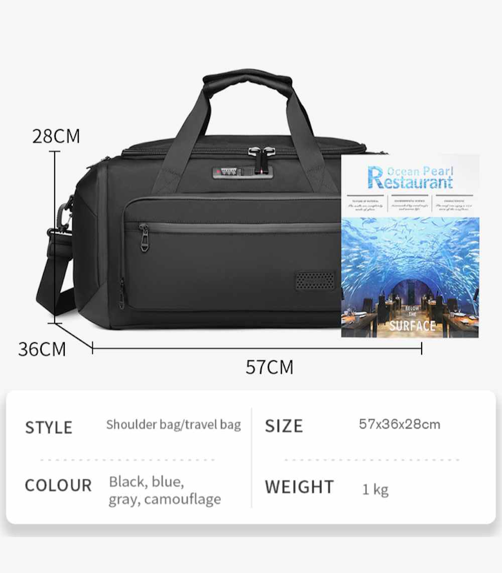 Elevate your active lifestyle with the OZUKO 9005 Multi-Functional Gym & Travel Duffel Bag, the ultimate hybrid 30L gym and travel duffel. Measuring 23 x 25Â x 52 cm, this ultralight bag (0.8kg) is engineered for those who demand organization on the move. Crafted from high-density, Water-Resistant Oxford Fabric, it shields your essentials from damp locker rooms and unpredictable weather.