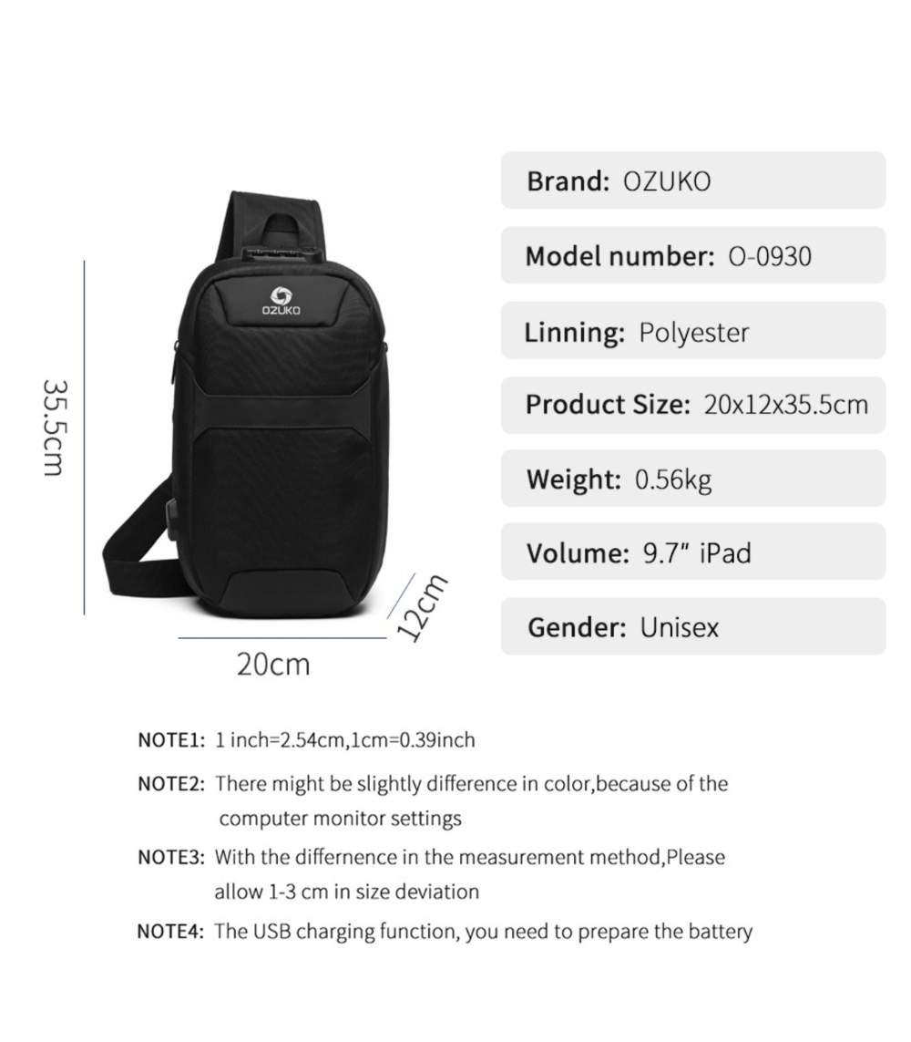 Stay powered on the go with the external USB charging port, and keep hydrated thanks to the dedicated water-bottle slot. The ergonomic strap includes a quick-access card slot, allowing you to retrieve metro cards or IDs without removing the bag. With a 270-degree wide-opening zipper, every compartment is easily accessible, while the lightweight 0.56 kg construction ensures effortless carry comfort. Whether you’re exploring a new city or commuting to work, the OZUKO 9270 offers the perfect balance of security, organization, and modern style.