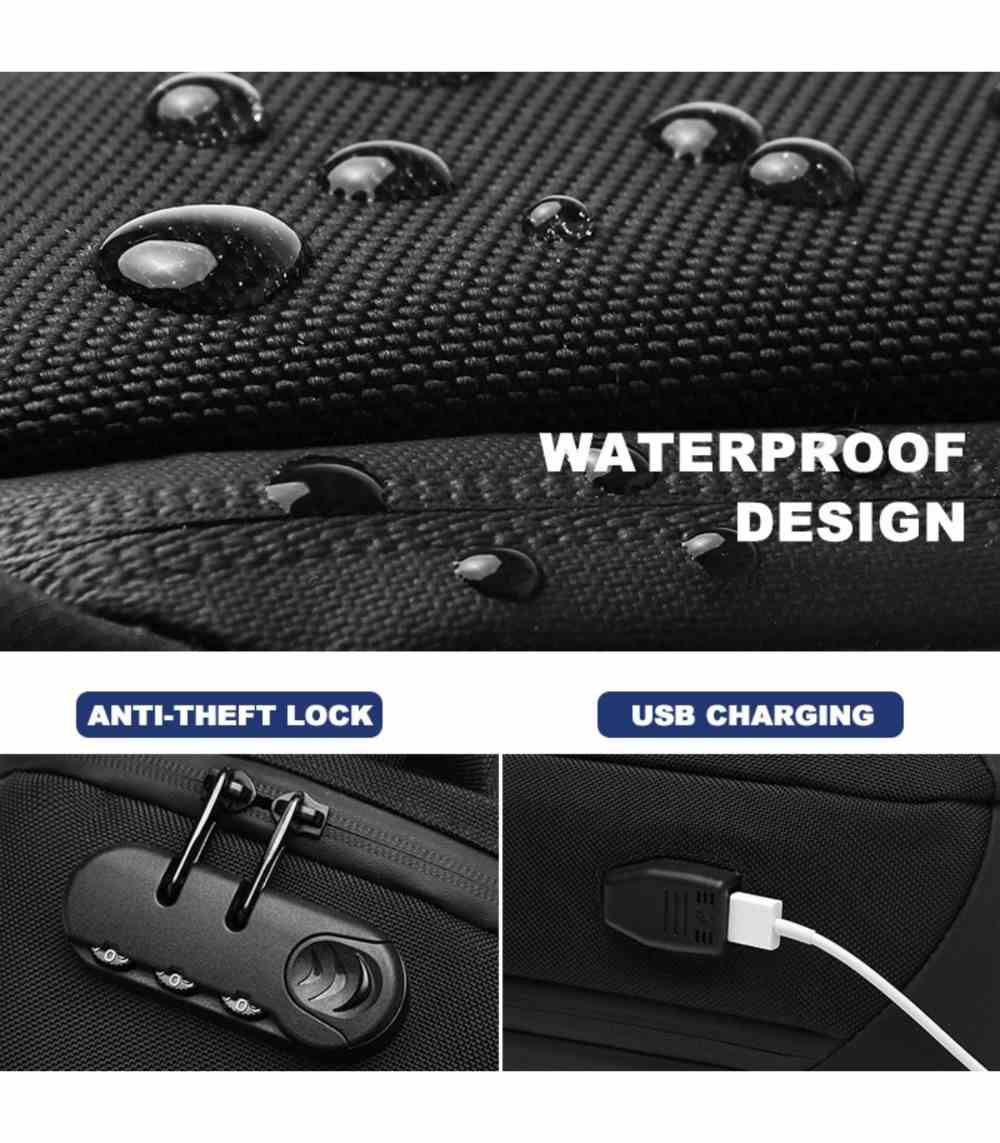 | OZUKO | 9270 | Oxford Fabric | 36 × 12 × 20 cm | 9 Litres | 0.56 kg | Water-Resistant | Built-in Lock & Hidden Slot |