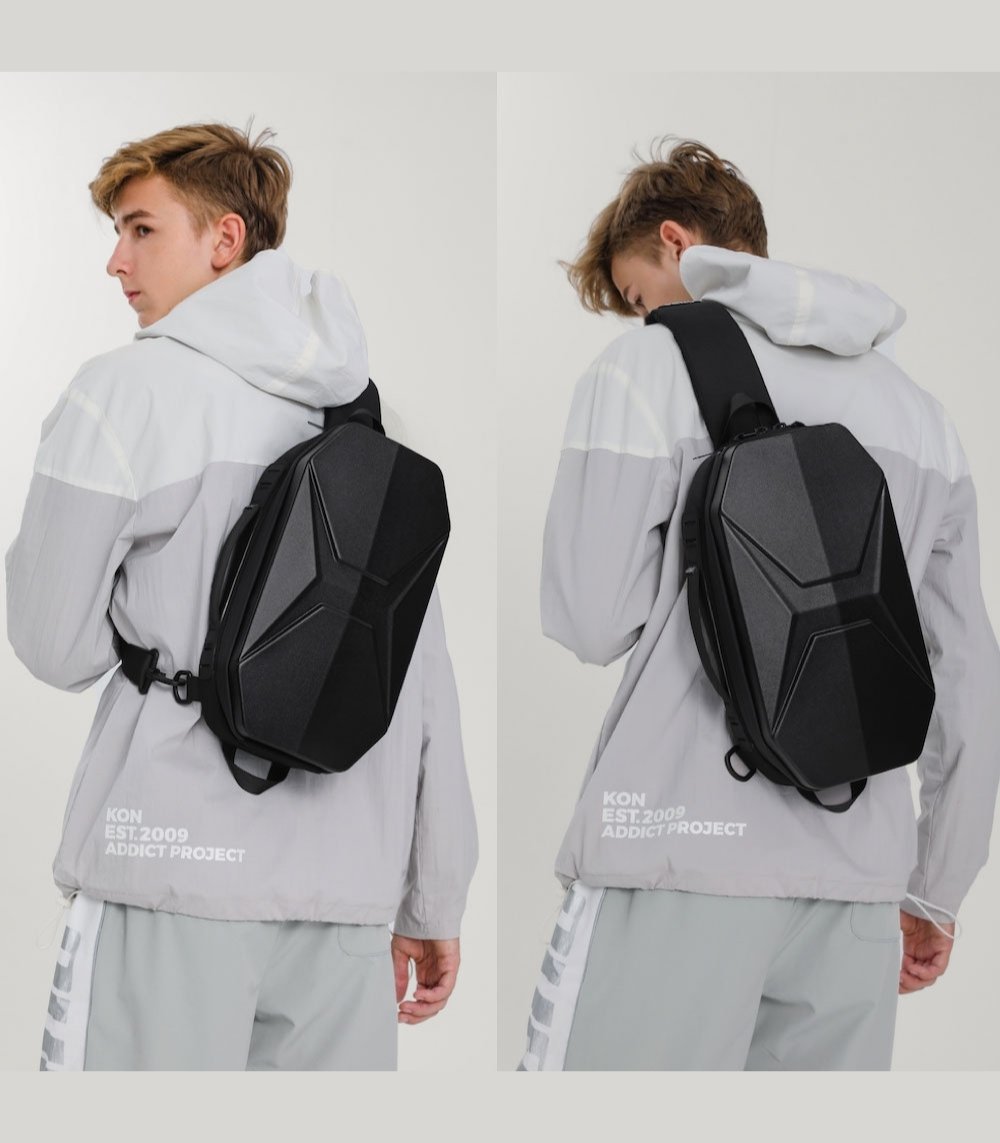 Water-Resistant Chest Bag – Equipped with customized waterproof zippers and a durable EVA hard shell to keep belongings dry in light rain and daily commutes.