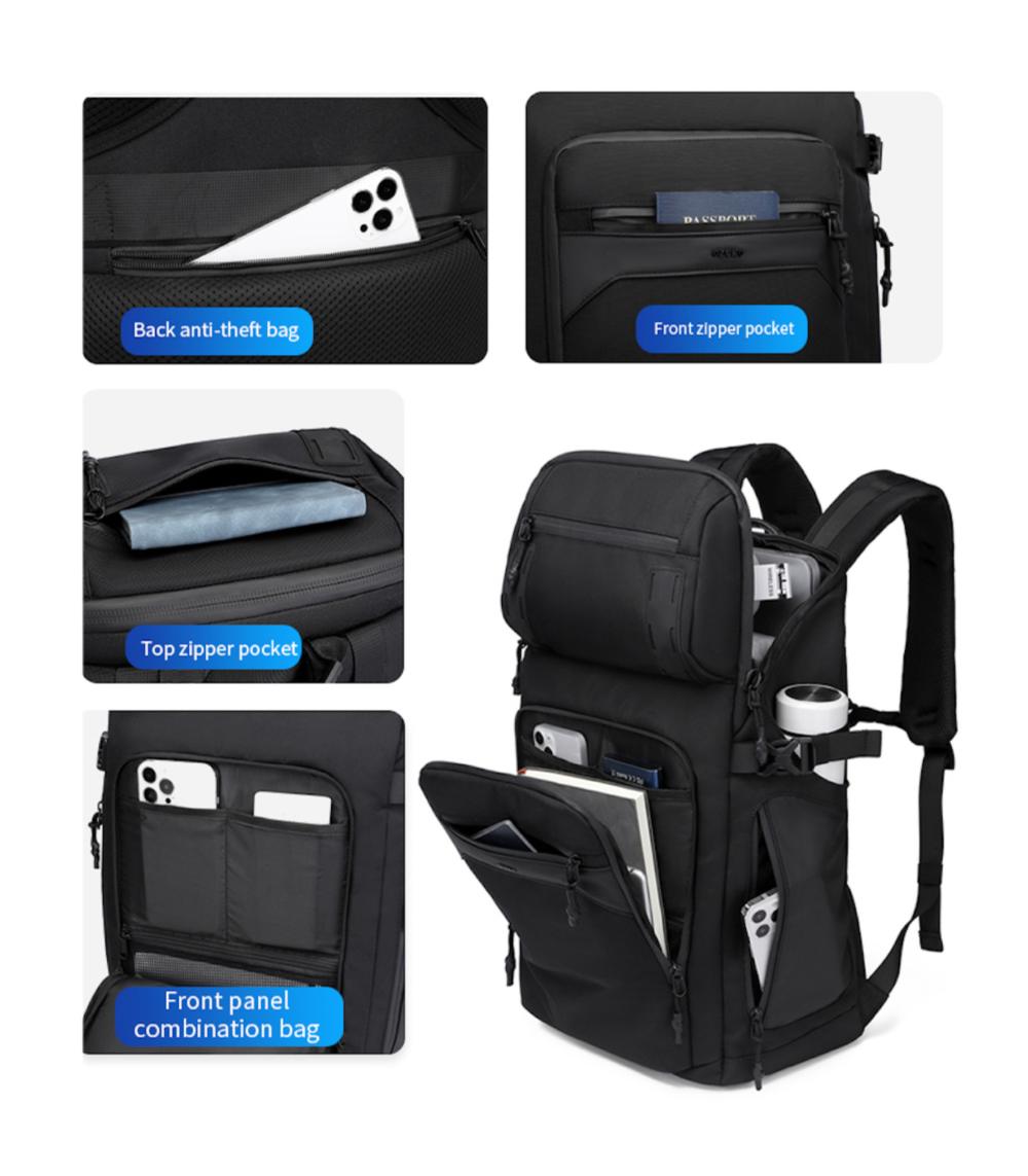 The OZUKO 9630 Designer Anti Theft Business Backpack is a high-capacity, anti-theft business backpack designed for maximum security and versatility. Built with waterproof 1680D Oxford fabric, it features an expandable 36–57L interior, a dedicated 15.6-inch laptop compartment, and a 90-degree opening for easy packing. Its ergonomic, breathable design makes it the ultimate choice for business travel, outdoor hiking, and daily commuting.