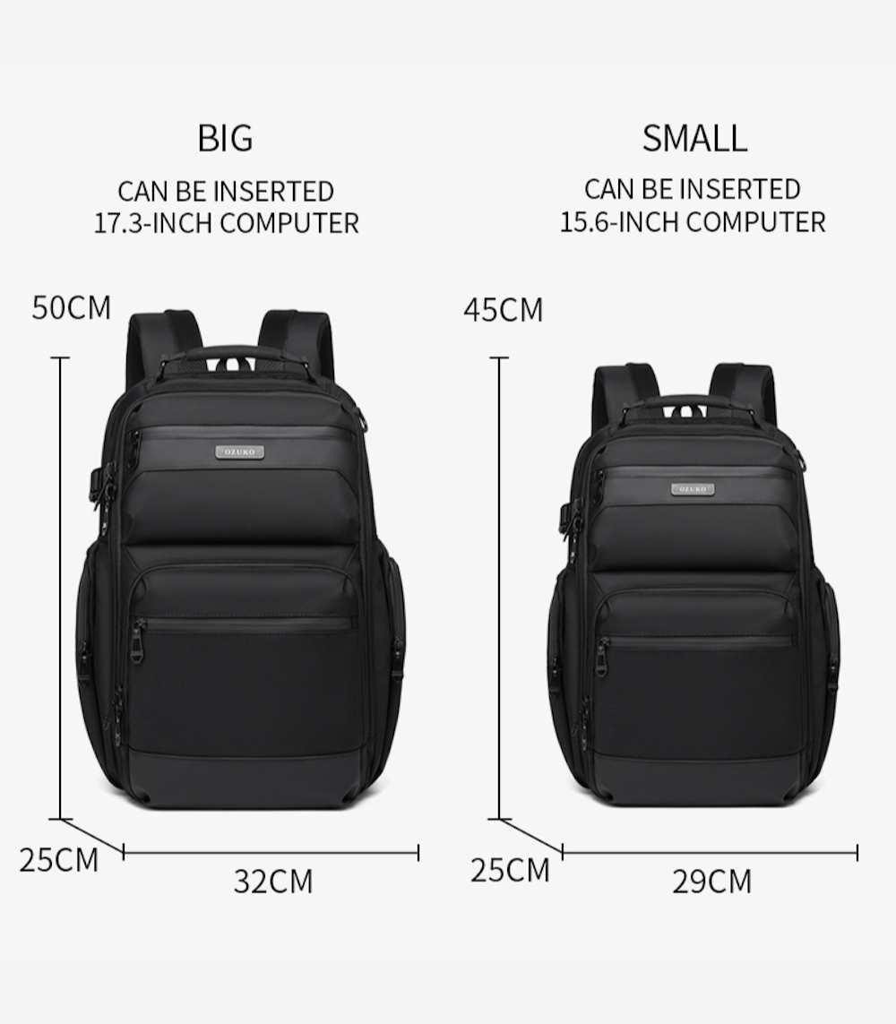 The OZUKO 9770S Travel Laptop Backpack is a compact, high-performance backpack designed for students, professionals, and daily commuters. Built to accommodate laptops up to 15.6 inches, it offers the same stylish functionality and comfort as the 9770L in a smaller, more lightweight form.