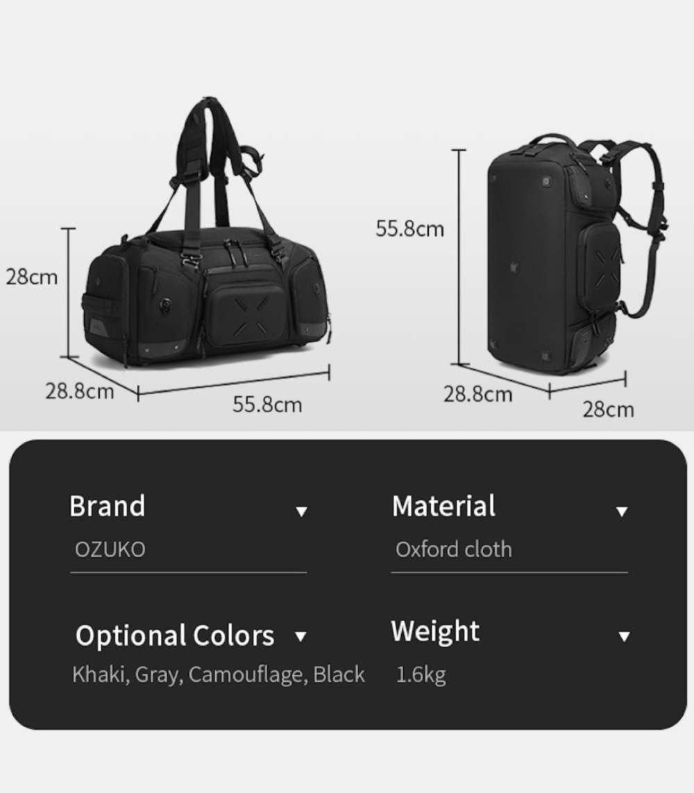 • 2-In-1 Convertible Design: The OZUKO 9834 Waterproof Tactical Sneaker Travel Backpack for Men transforms between duffel and backpack modes with detachable adjustable straps for flexible everyday carry.