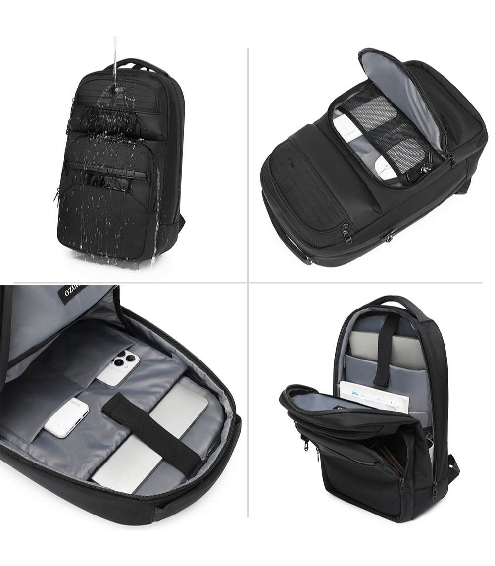 Comfort is prioritized with ergonomic shoulder straps, a padded back panel, and an anti-slip chest buckle to reduce strain during extended use. Additional thoughtful details—like a magnetic fold-flat handle, rear luggage strap, hidden cup pocket, and retractable keychain holder—make the OZUKO 9849 a convenient, stylish choice for life on the move.