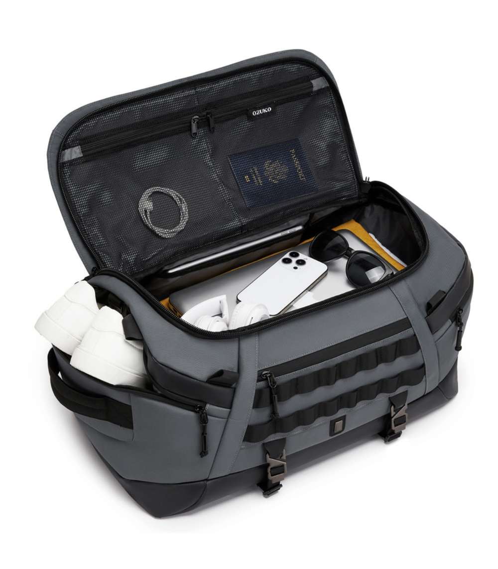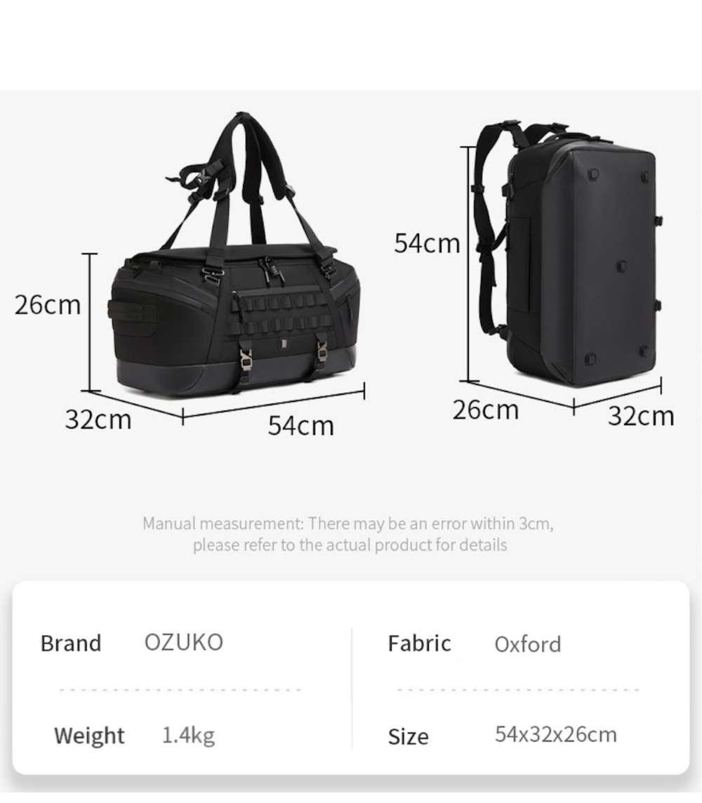 - Secure & Durable Build: OZUKO 9903 Large Capacity Duffel Bag & Backpack is made with waterproof, wear-resistant material and includes an anti-theft passport lock, MOLLE expansion system, double zippers, and removable buckles.