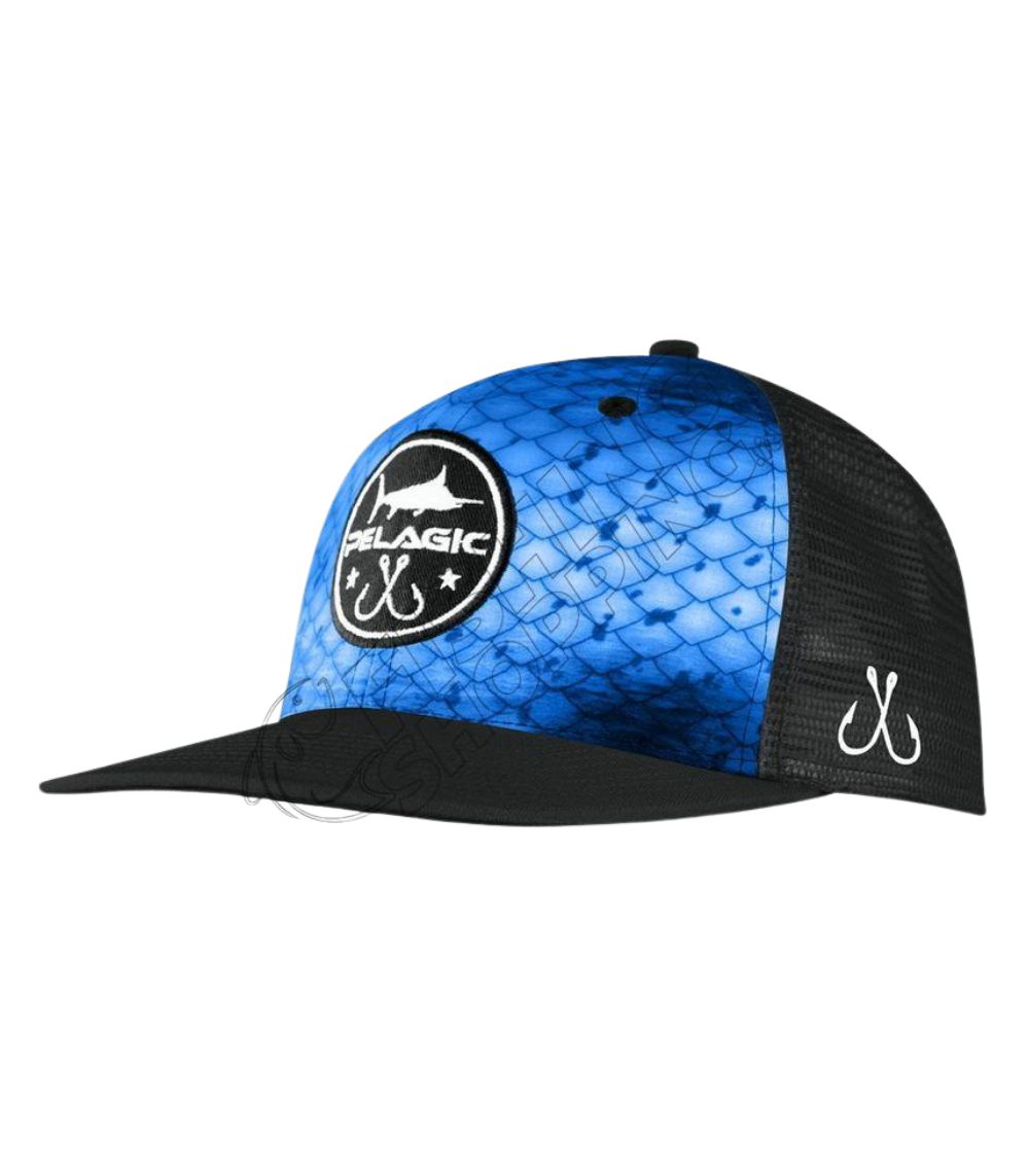 | Pelagic | Hydro Snapback Cap | Trucker Style Snapback | One Size Fits Most | Adjustable Snapback | Custom Pelagic Circle Logo Patch | Breathable Mesh Back Panels | Dorado Green OS, Dorado Blue OS, Hex Blue OS, Hex Black OS |