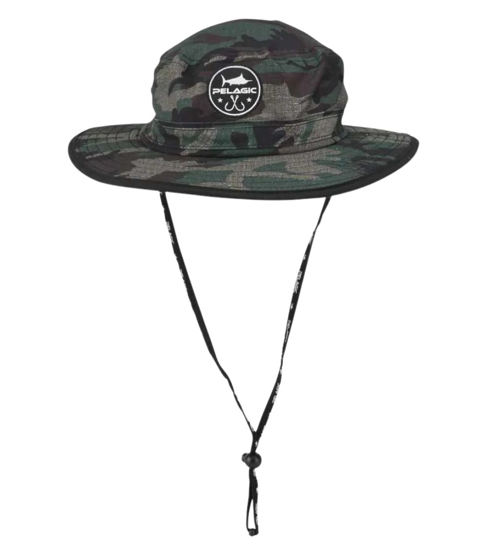 | Pelagic | Sunsetter Fish Camo Hat | Wide-Brim Fishing Hat | UPF 50+ | One Size | Adjustable Tightening Strap |