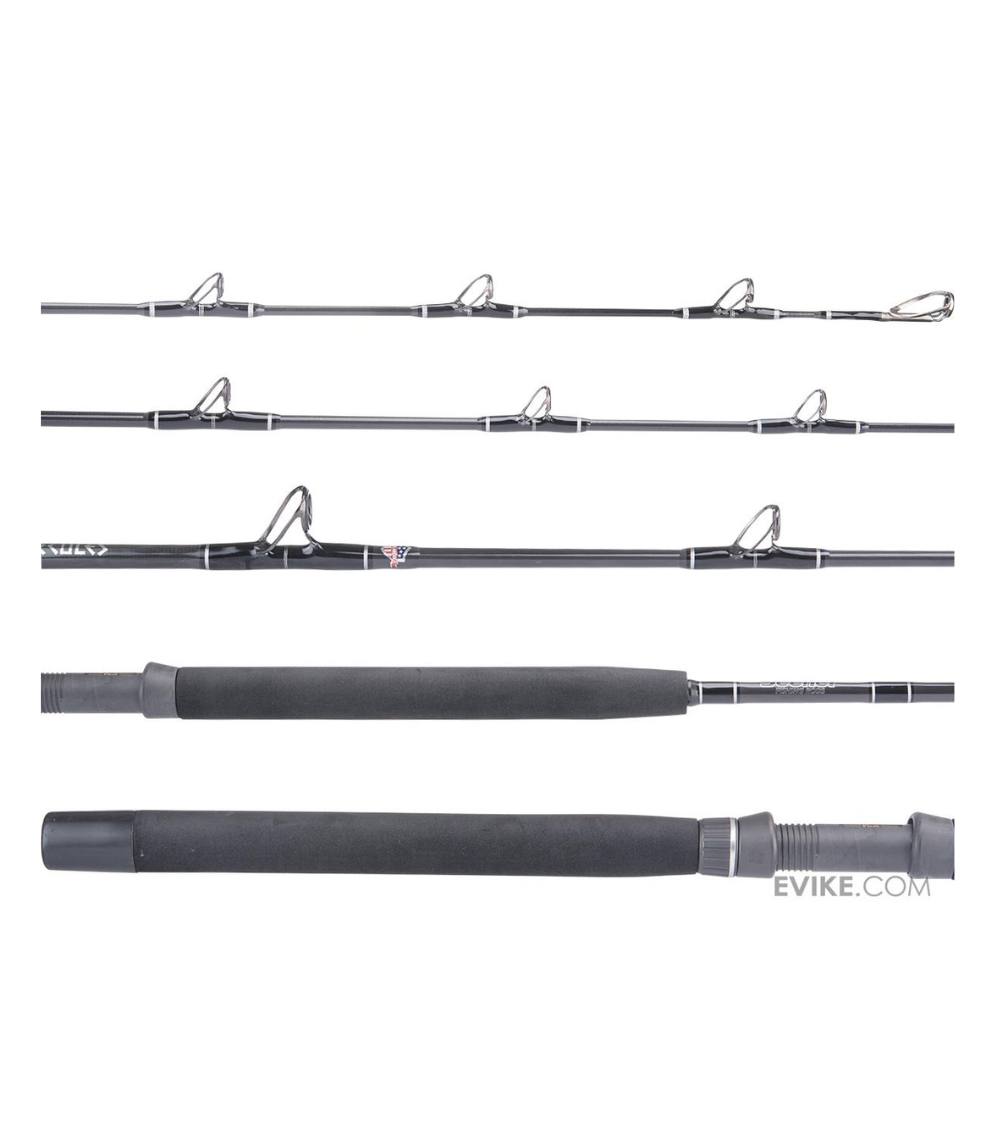 Seeker Hercules 7 ft Conventional Rod are built for offshore jigging and popping, featuring S-Glass and graphite construction, Fuji Titanium-plated SiC guides, Fuji reel seats, lightweight EVA handles, and dependable saltwater performance.