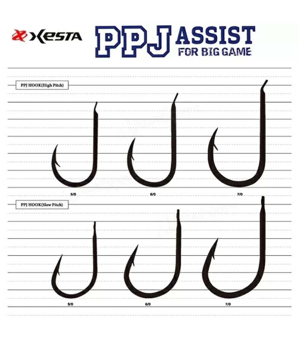 The Xesta PPJ High Pitch Assist Hook is a premium stainless-steel single assist hook made for high-pitch jigging. It’s built to handle hard strikes and heavy pressure in saltwater, while staying light enough to keep your jig action clean and natural. The curve-point design helps the hook bite quickly and slide smoothly toward the gap for faster, more reliable hook-ups—even on short hits. In addition, the wide gape improves holding power once the fish is on.