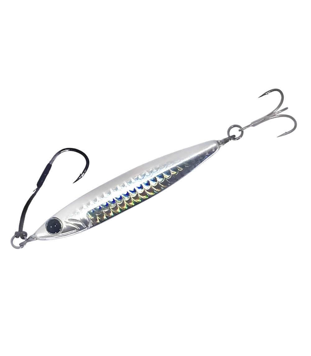 The Zeake Metal Jig R Sardine combines lifelike sardine design with a balanced center-rear weight for stable casting and natural fall action. Equipped with Zeake assist and triple hooks, it offers reliable performance for saltwater fishing. Available in 6g–40g and multiple natural color finishes.